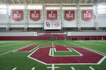 The 74,000-square-foot Everest Training Center includes a full-sized playing field, simulated stadium lighting, a complete scoreboard with play clocks, LED 40-yard timing devices and a ceiling that hangs 65 feet above the playing surface to allow for all kicking and throwing drills.