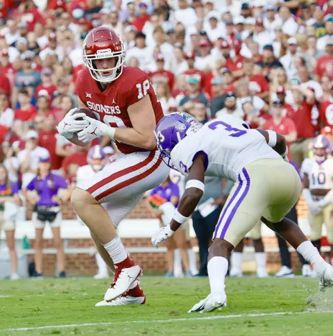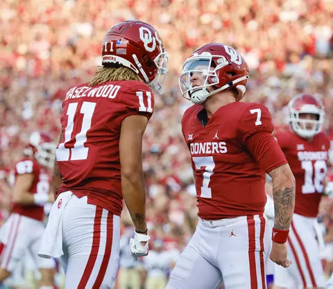 • WR Michael Woods II scored his first receiving touchdown as a Sooner on a 4-yard play. It was his 11th career receiving touchdown (had 10 TD receptions in three seasons at Arkansas). He notched two receptions for eight yards in the first half.