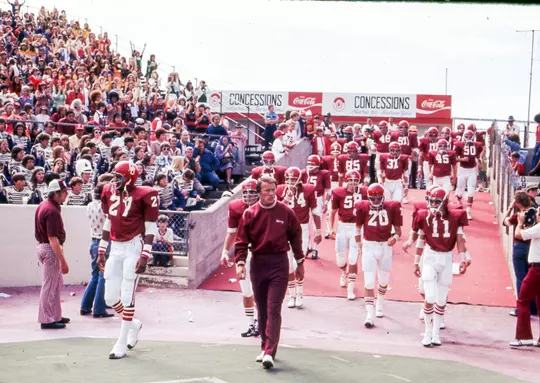 But student protests began in the 1960s over Little Red, and he was officially removed as mascot in 1970 and gone from the sidelines after 1973.